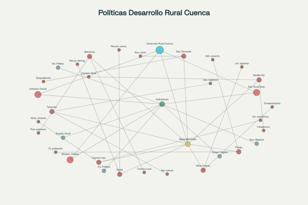 Mapa conceptual de ejes, indicadores y retos por municipio de la provincia de Cuenca