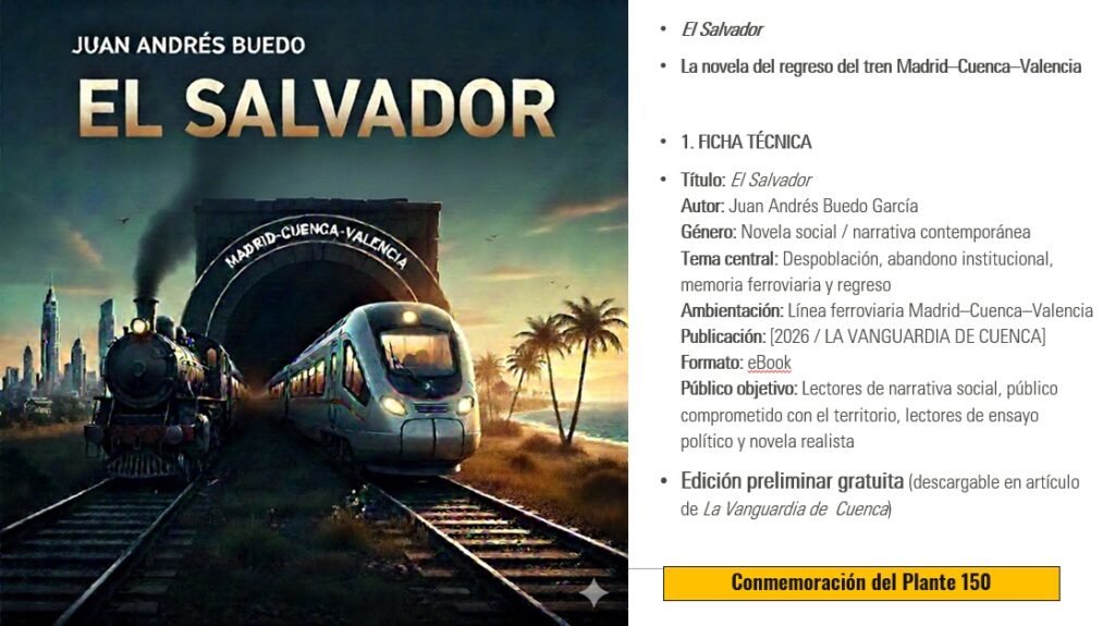 Cuenca, [fecha] — El escritor y analista político Juan Andrés Buedo García publica El Salvador, una novela social que aborda el cierre y la reapertura del tren convencional Madrid–Cuenca–Valencia como símbolo del abandono institucional y la desigualdad territorial en España.