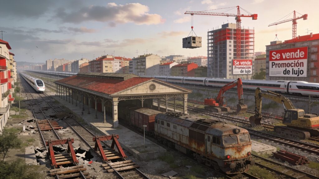 Sobre el papel, la intervención suena impecable: bulevares, zonas verdes, dotaciones deportivas, integración de barrios. Pero el corazón económico de la operación no está en el arbolado, sino en la recalificación. Cuando se eliminan 20 hectáreas de franja ferroviaria en pleno corazón urbano, no solo se libera suelo: se dispara el valor de todo el entorno, lo que antes era trasera industrial junto a unos talleres ruidosos se transforma en primera línea ante un bulevar “moderno”.