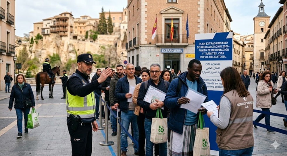 Hay un tipo de ruido que define nuestro tiempo: el murmullo de la espera. Decenas de personas, papeles en la mano, móvil en el bolsillo, ojos fijos en una puerta que no se abre. En muchas ciudades españolas, y también en capitales de provincia como Cuenca, la regularización extraordinaria ha producido ese paisaje: colas a la intemperie, madrugones, turnos improvisados, discusiones por quién va delante, vendedores ambulantes aprovechando el flujo y policías tratando de ordenar lo que la burocracia ha desordenado.